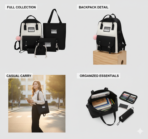 Plecak Szkolny Damski 4 w 1 – Model 2 Czarny